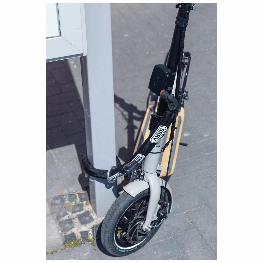 Si l’alarme est dissuasive, il est important de coupler son utilisation avec des antivols comme un antivol U principal et une chaine vélo. Notez qu’il est possible de raccorder le câble Abus 100 cm ou la chaîne vélo Abus 6KS 100 cm à l’Alarmbox 2.0 avant d’attacher cet antivol à du mobilier. Nous proposons aussi directement l’Alarmbox 2.0 Abus avec chaîne vélo fournie (de 100 cm).